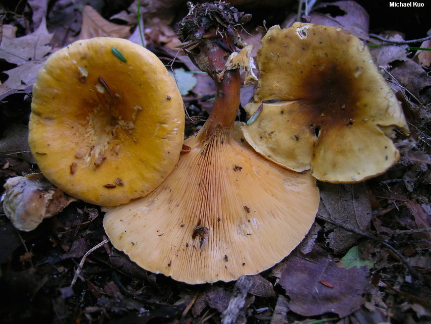 Cite this page as: Kuo, M. (2015, March). Hygrophoropsis aurantiaca. Retrieved from the MushroomExpert.Com Web site: http://www.mushroomexpert.com/hygrophoropsis_aurantiaca.html |