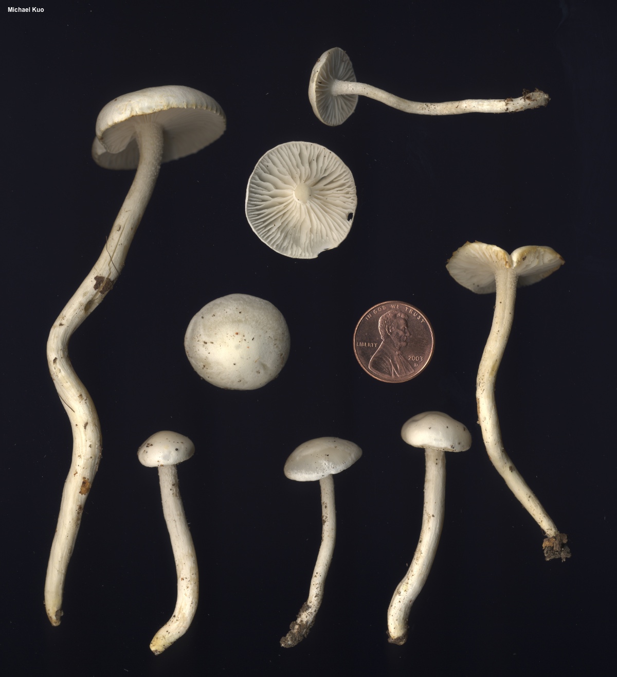 [ Basidiomycota > Agaricales > Hygrophoraceae > Hygrophorus . . . ] Hygrophorus discoxanthus by Michael Kuo, 28 November 2022 Distinguishing features for this waxy cap include its association with beech trees, its slender stature, and the mealy flakes near the apex of its stem. The gills are attached to the stem but do not run down it. Overall, the species is white when young and fresh, but it often develops yellow colors as it matures, and can even turn orangish brown. When dried for the herbarium, the gills of Hygrophorus discoxanthus turn dark reddish brown. Easy enough, right? Not if you turn to page 314 of Mushrooms of the Midwest, by some idiot named Michael Kuo (2014), where you will see the collection illustrated here, which I made in 2003, serving as an illustration for Hygrocybe virginea (now Cuphophyllus virgineus). For me this species is a lesson in hygrophoroid humility. I missed two crucial details: the flakes on the stem apex, and the non-decurrent gills—both of which should have led me away from Cuphophyllus virgineus. Additionally I had not done thorough microscopy with the collection, so I missed the divergent, rather than interwoven, gill trama. My bad. I will understand if you decide not to trust me about look-alike species: Hygrophorus chrysodon is also white-then-yellow, but its surfaces turn bright yellow to orange with KOH; Hygrophorus eburneus yellows only slightly, if at all; Hygrophorus piceae does not turn yellow and is associated with spruces. And there are a few others—but none of these species have gills that turn reddish brown when dried. Hygrophorus chrysaspis is a synonym. Description: Ecology: Mycorrhizal with American beech and with European beech; growing scattered or gregariously; summer and fall; originally described from Sweden (Fries 1815); widely distributed in Europe and North America within the natural range of the host trees. The illustrated and described collection is from Illinois. Cap: 1–4 cm across; convex when young, becoming broadly convex; sticky when fresh, but soon dry; bald; at first white, and sometimes remaining so for quite a while, but usually developing yellow shades and becoming yellow to orangish brown with old age. Gills: Broadly attached to the stem; nearly distant; whitish, becoming yellowish to yellow with age and, when dried, dark reddish brown; short-gills frequent. Stem: 4–12 cm long; 4–6 mm thick; equal above a tapered base; sticky when fresh but soon dry; with mealy flakes near the apex, but bald below; white, discoloring yellow like the cap. Flesh: White; unchanging when sliced. Odor and Taste: Not distinctive. Spore Print: White. Microscopic Features: Spores 6–9 x 3.5–5 µm; ellipsoid, with an apiculus; smooth; hyaline in KOH; inamyloid. Basidia 45–50 x 4–5 µm; subclavate; 4-sterigmate. Cystidia not found. Lamellar trama divergent. Pileipellis a trichoderm or ixotrichoderm; elements 2–4 µm wide, smooth, hyaline in KOH; clamp connections present. REFERENCES: (E. M. Fries, 1815) C. Rea, 1908. (Hesler & Smith, 1963; Smith, Smith & Weber, 1979; Arnolds, 1986; Breitenbach & Kränzlin, 1991; Candusso, 1997; Boertmann, 2000; Boertmann, 2010; Bessette et al., 2012; Buczacki et al., 2013; Lodge et al., 2013; Gminder & Böhning, 2017; Boertmann, 2018; Læssøe & Petersen, 2019; Kibby, 2020.) Herb. Kuo 09280303. This site contains no information about the edibility or toxicity of mushrooms. |