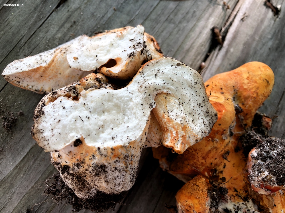 Cite this page as: Kuo, M. (2023, September). Hypomyces lactifluorum. Retrieved from the MushroomExpert.Com Web site: http://www.mushroomexpert.com/hypomyces_lactifluorum.html |