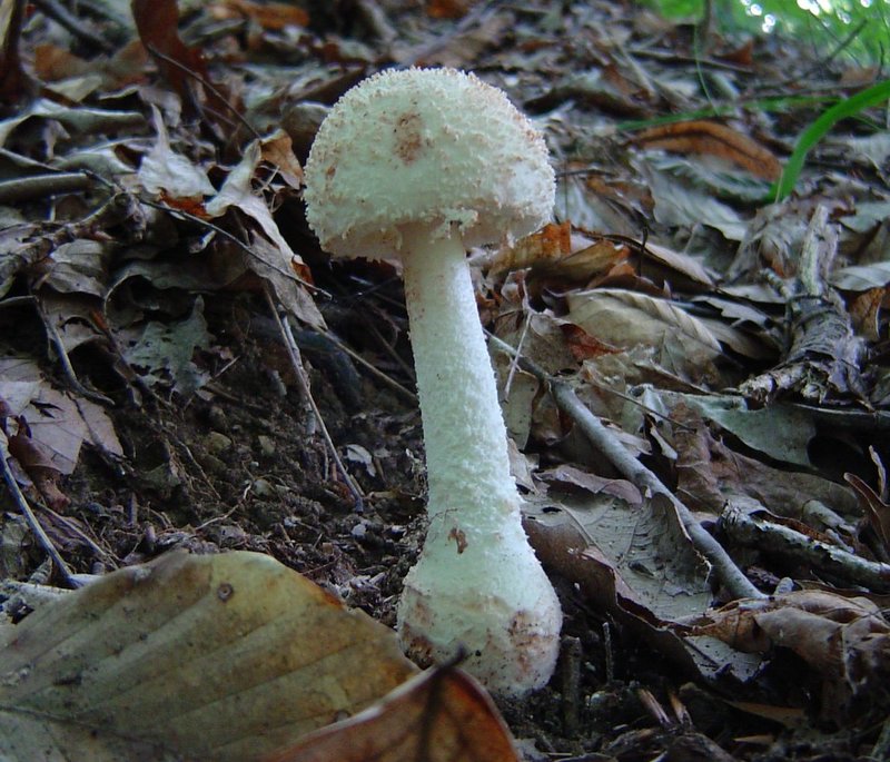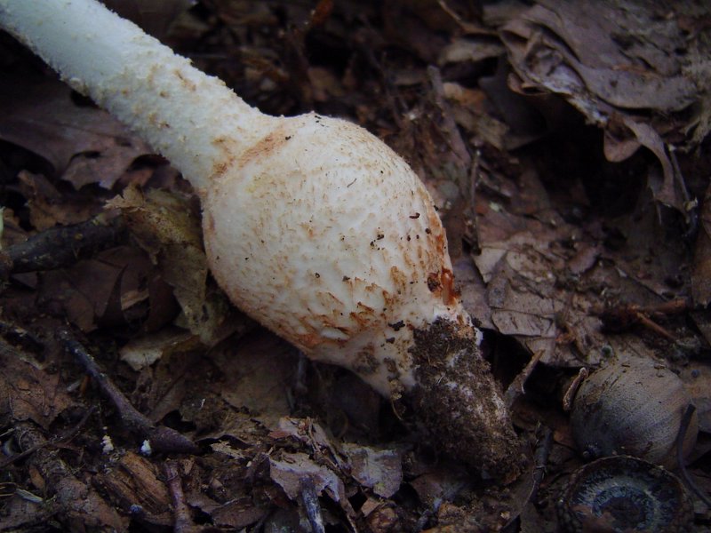 Common name: Carrot Foot. These collection were found in the month of August in oak/beech woods. Rod Tulloss, Amanita expert, warns: "I have been told on a number of occasions that the stipe's bulb is edible. Considering the poor knowledge of toxins in section Lepidella and the established fact that kidney and/or liver failure is associated with ingestion of species in section Lepidella, I cannot recommend that this species be eaten." |