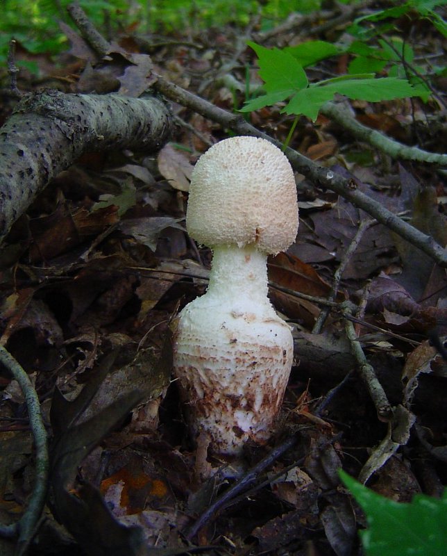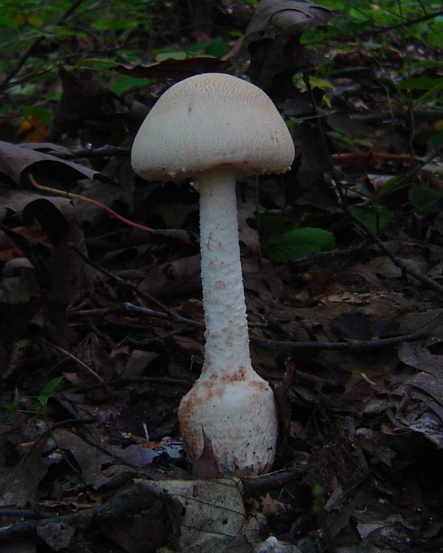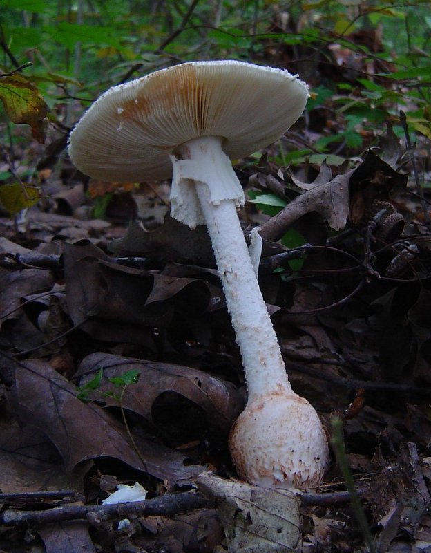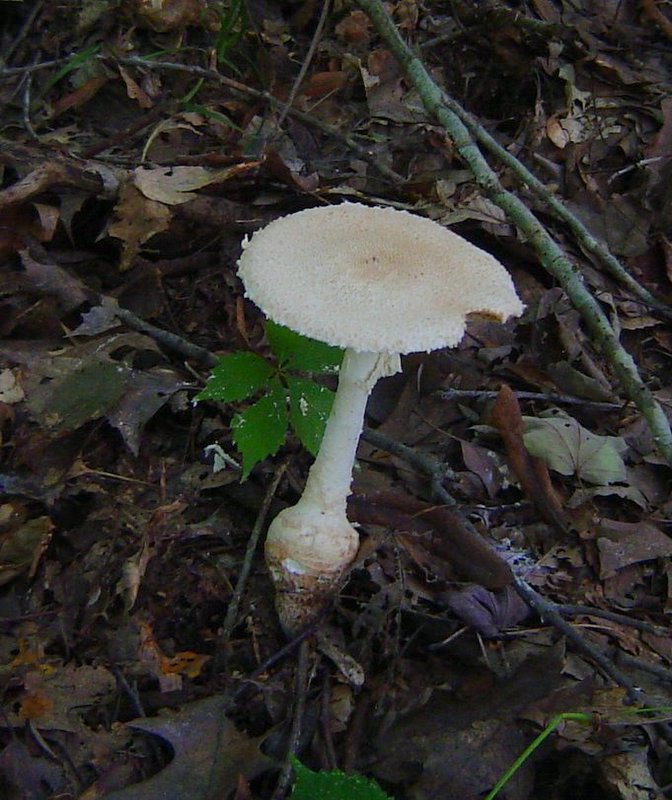 The largest portion of this mushroom's basal bulb develops above ground. This specimen was 10 inches tall, cap 5.5 inches wide. Big mushroom! |