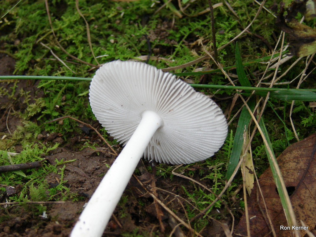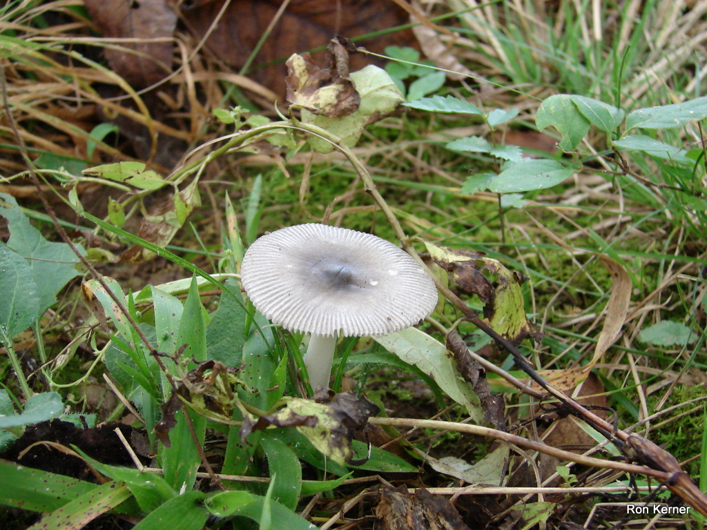 The Grisette mushroom. Amanita, section Vaginatae. There are several of these gray, smooth-capped and veil-less Amanita mushrooms which may be part of a species complex (may contain more than one species). Can be found summer and fall, often in urban settings. |