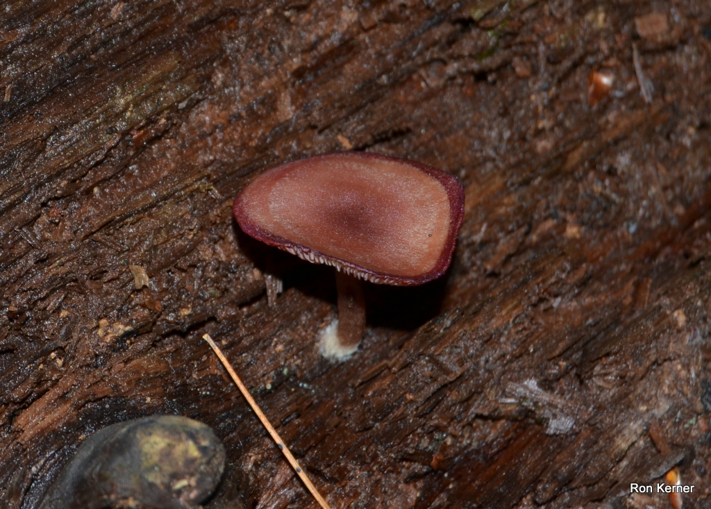 | Rain soaked Callistosporium purpureomarginatum. Note well defined purple cap margin and the white gills. |