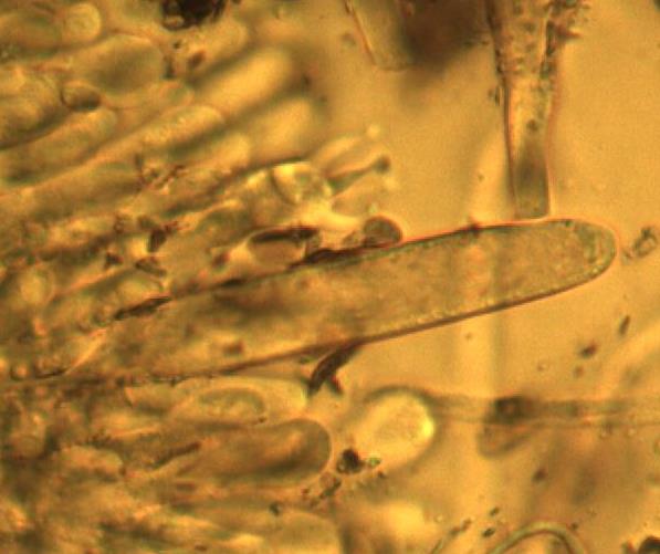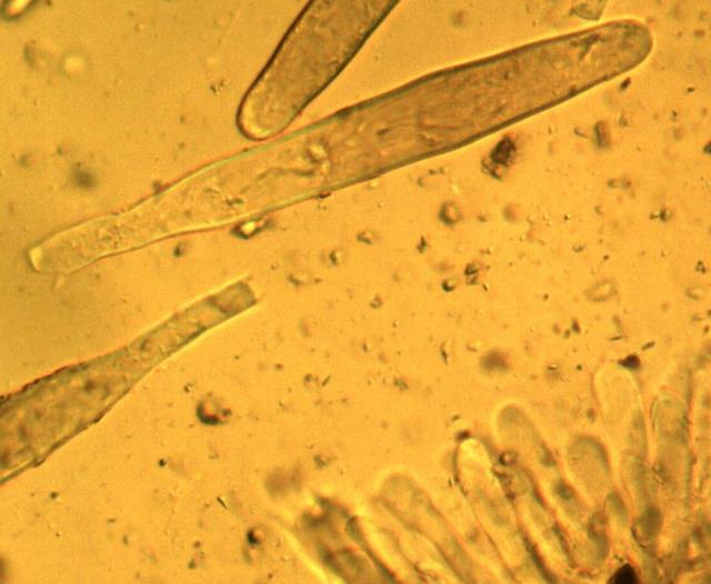 | The thin-walled cystidia of Chroogomphus ochraceus. |