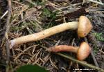 | These specimens of Chroogomphus ochraceus were found in late September growing from the ground in mixed woods; red cedar and white pine present. |