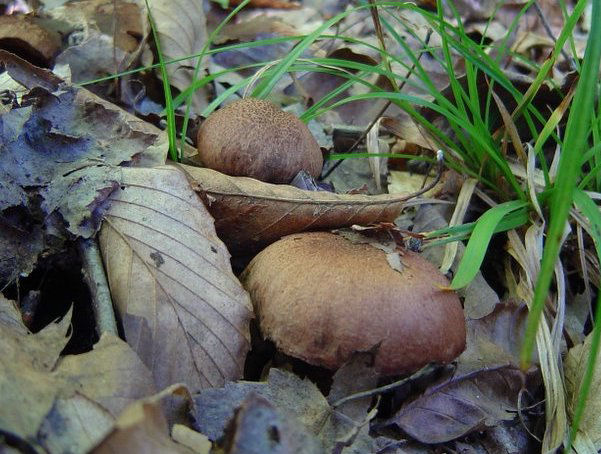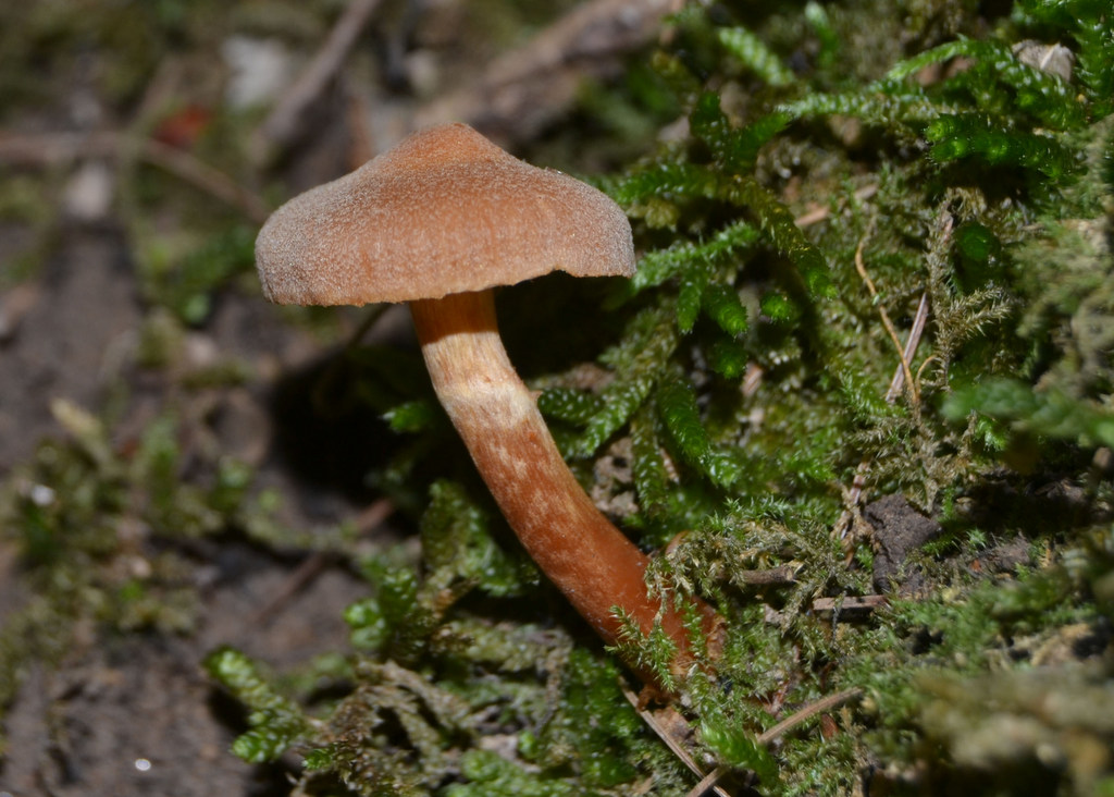 | Cortinarius distans features a scaly/grainy cap surface and a white ring zone on the stem; these characteristics fade with age. Spore print is a rusty brown. |