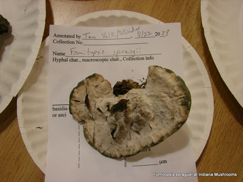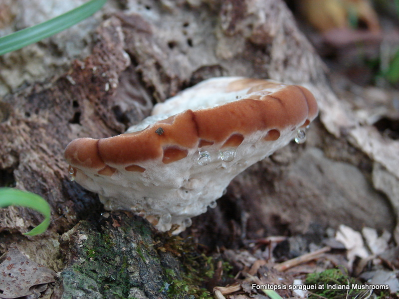 | The margin of Niveoporofomes spraguei varies in color; reddish brown (usually when very young) to light brown and will bruise green when handled. |