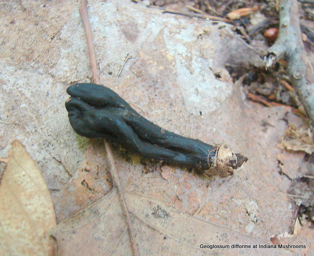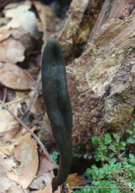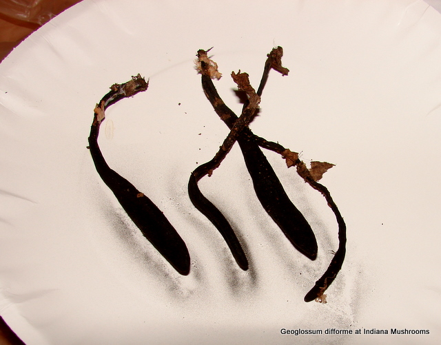 When dry, this earth tongue has a velvety look and feel. Spore print appears black; actual spore color is dark brown. |
