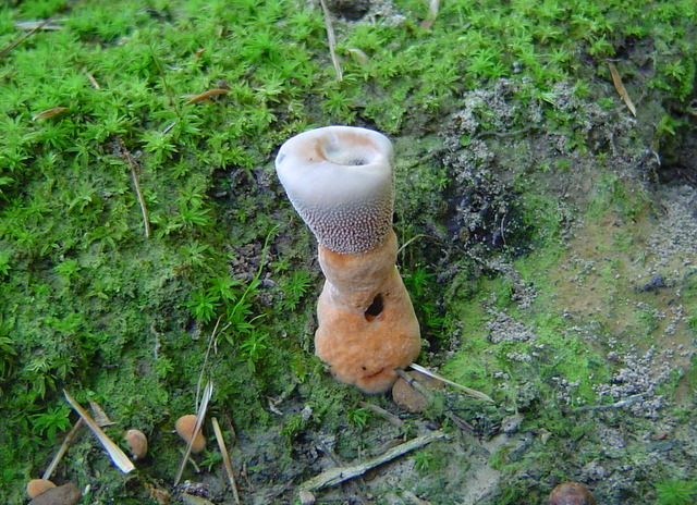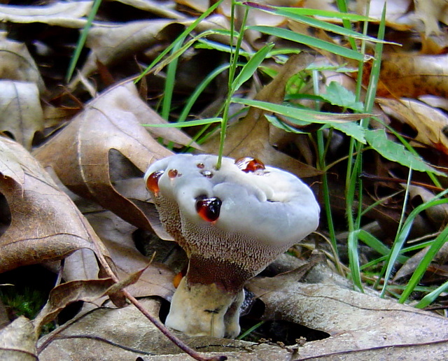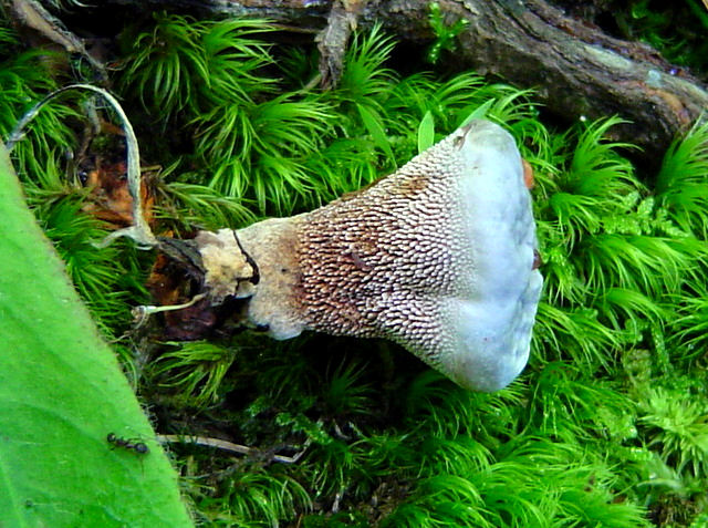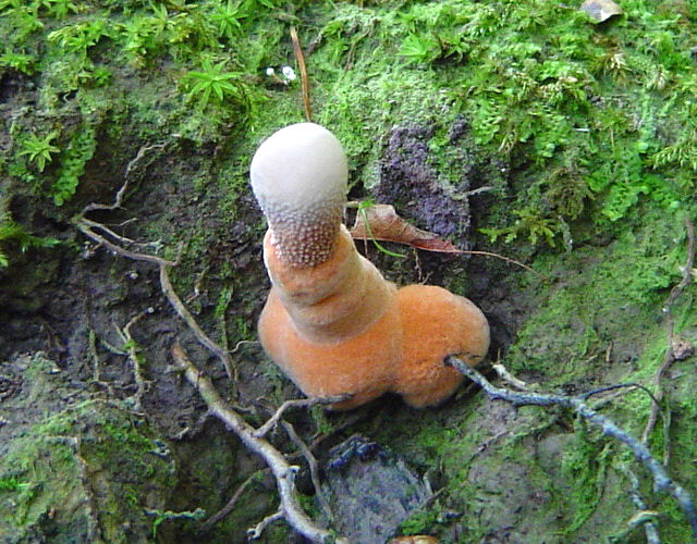 | These pictures show the fruiting body of Hydnellum caeruleum at early stages of development. |