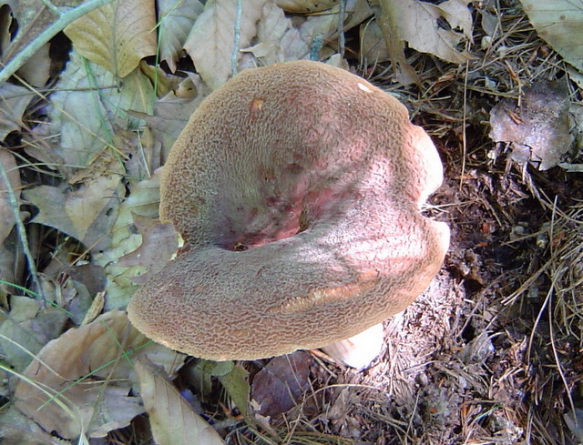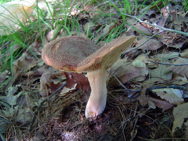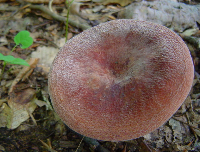 Formerly Lactarius corrugis. Found growing from ground in oak/beech woods. The cap of Lactifluus corrugis becomes wrinkled with ridges and furrows, described as corrugated. Milk is white. Gills stain brown when bruised. White spore print. |