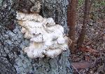 | Laetiporus sulphureus forms fan shaped shelves. |