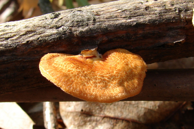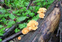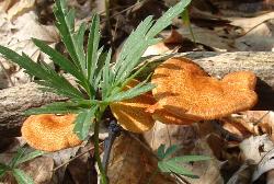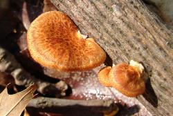 Found in early spring growing from fallen logs, branches and sticks of