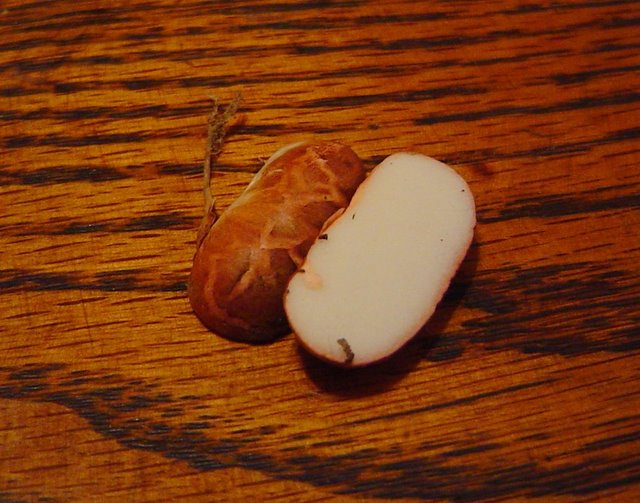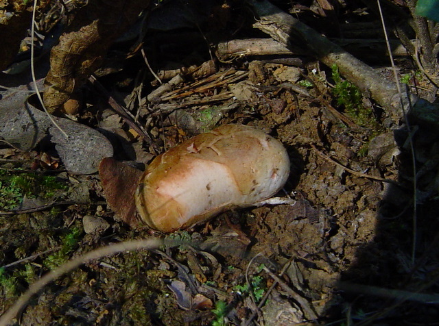 | These pictures are of a young specimen (white interior); 3.5cm long. Rhizopogon rubescens can be found under pine trees. |
