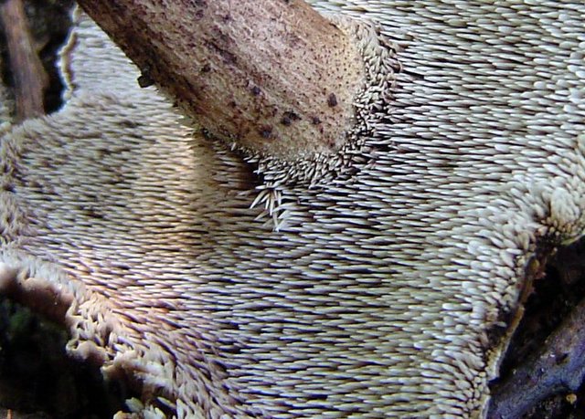 The "teeth" of this mushroom are very soft. Found in semi-open