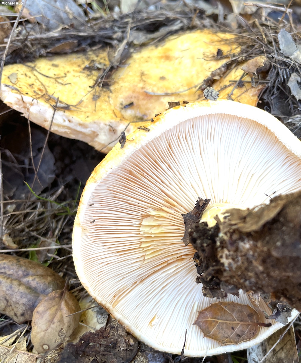 Fortunately there are more stable identifying features for this mushroom, including its taste, which is quickly very acrid (excruciatingly so)—and the fact that the milk is white as exuded, and only turns slightly yellow (if at all) on exposure to air. These features should help separate Lactarius alnicola from Lactarius xanthogalactus, which also associates with coast live oak, since it has milk that consistently turns darker yellow, and a slowly, slightly acrid taste.