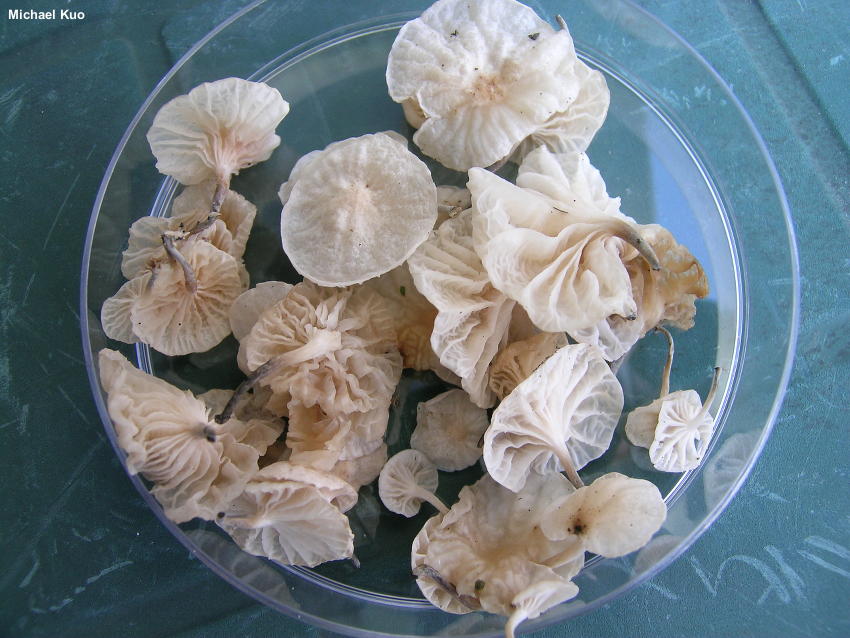 Cite this page as: Kuo, M. (2016, August). Marasmiellus candidus. Retrieved from the MushroomExpert.Com Web site: http://www.mushroomexpert.com/marasmiellus_candidus.html |
