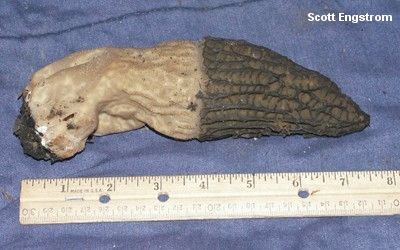 Morchella septimelata [ Ascomycetes > Pezizales > Morchellaceae > Morchella . . . ] by Michael Kuo Morchella septimelata is a burn-site morel from western North America, defined by its DNA sequences, apparently identical in physical features to Morchella sextelata. Both species are "black morels," which means that their ridges darken with maturity, their pits and ridges are primarily vertically oriented, and their caps are attached to the stem with a small but noticeable groove, and both species are apparently limited to conifer burn sites. There do not appear to be any consistent difference in physical features. Honestly, I wish we could let the morphology trump the DNA and just fold these two phylogenetic species into one morphological species. But while that approach is sometimes taken when species are very closely related, Morchella sextelata and Morchella septimelata aren't even that close--in fact, according to the four-gene testing done by O'Donnell and collaborators (2011), Morchella septimelata is more closely related to Morchella species mel-8, Morchella capitata, and Morchella importuna than to Morchella sextelata . . . so we would have to fold all of those species into one superspecies that would be morphologically and ecologically incoherent, since some of the mushrooms in question look very different, and/or do not inhabit burn sites. Unlike Morchella sextelata, Morchella septimelata does not reliably reveal itself through basic RFLP analysis of the ITS region--which means that the expensive and time consuming four-gene sequencing routines used by O'Donnell and collaborators (2011) must be used in order to identify it with precision. Perhaps it should have been named Morchella gluteomaximodolorosa. Description: Ecology: Possibly saprobic and mycorrhizal at different points in its life cycle; appearing in lightly to moderately burned conifer forests in western and northwestern North America, often near creek beds and seeps, in the spring or summer following the fire; documented from Montana, Oregon, and British Columbia. Cap: 4-10 cm tall and 3-7 cm wide; conical or nearly so; pitted and ridged, with the pits primarily arranged vertically; when young with bald or finely velvety, bluntly flattened, brownish ridges and olive, brownish, or pinkish pits; when mature with flattened to sharpened or eroded, dark brown to black ridges and brownish to tan pits; attached to the stem with a small groove (1-3 mm deep); hollow. Stem: 3.5-10 cm high and 2-5 cm wide; equal, or somewhat swollen at the base; whitish to brownish; finely mealy with granules; hollow. Microscopic Features: Spores (17-)18-25(-30) x 10-15(-20) µ; smooth; elliptical; without oil droplets; contents homogeneous. Asci 8-spored. Paraphyses cylindric with subacute or subfusiform apices; septate; hyaline in KOH. Elements on sterile ridges 60-200 x 7-18 µ; septate; brownish to brown in KOH; terminal cell clavate (rarely subcapitate or irregular). REFERENCES: M. Kuo in Kuo et al., 2012. (O'Donnell et al., 2011; Kuo et al., 2012.) SPECIMENS EXAMINED: Herb. F. 04040402, 04300401, 05160401, 06150401 (topootype), 06150404 (holotype), 06150408, 06150410, 06180417, 07070401, 07070408, 07140404. This site contains no information about the edibility or toxicity of mushrooms. |