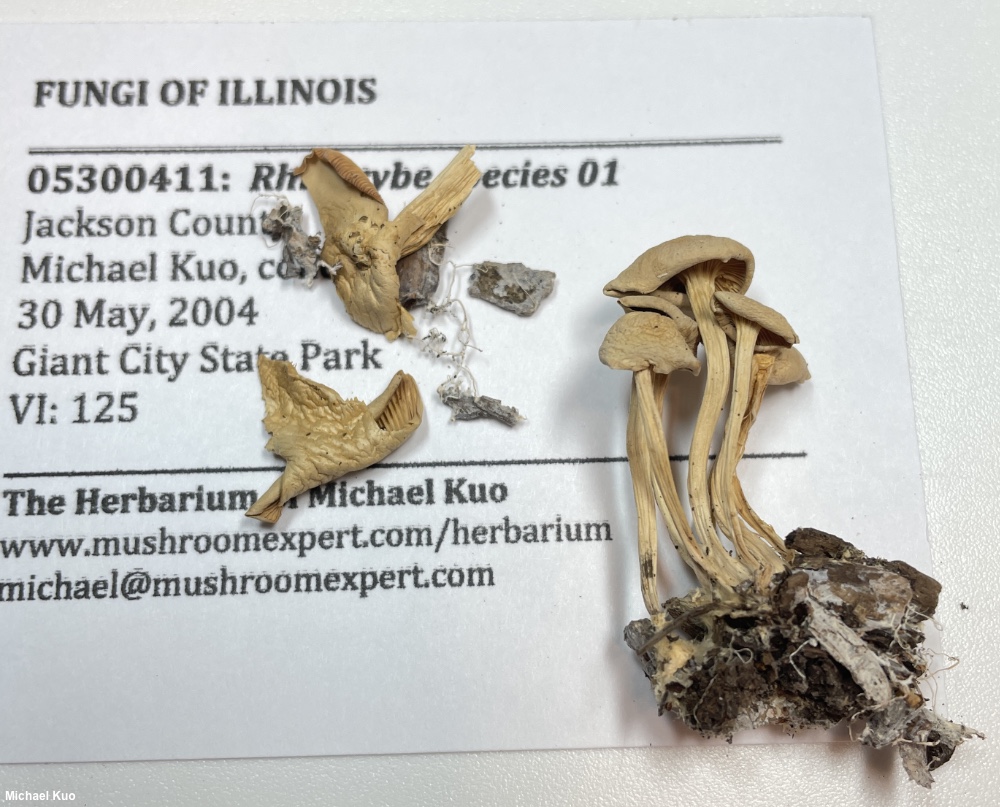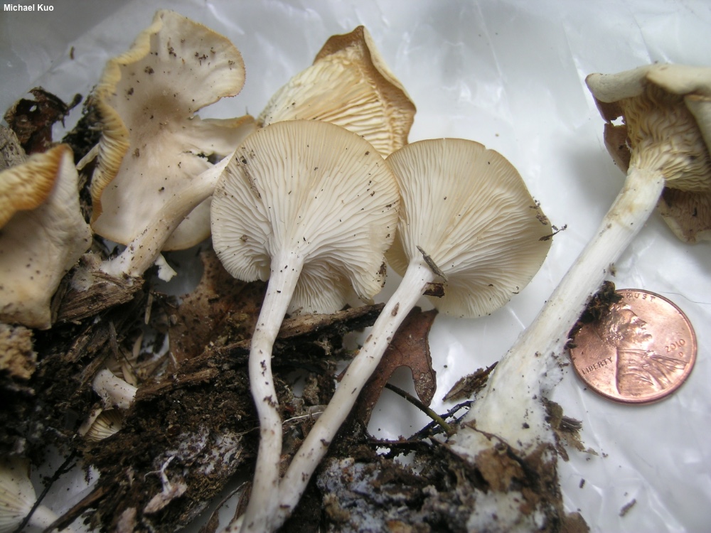 Major Groups > Gilled Mushrooms > Pale-Spored > Clitocyboid Mushrooms > Rhizocybe species 01 |