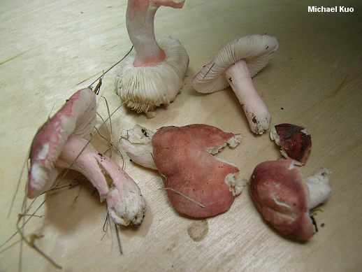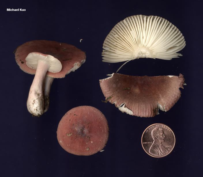 Russula uncialis [ Basidiomycetes > Russulales > Russulaceae > Russula . . . ] by Michael Kuo Red species of Russula are confoundingly difficult to separate from one another, but Russula uncialis has enough distinguishing features to make it identifiable--perhaps even without microscopic analysis. To wit, these features are: