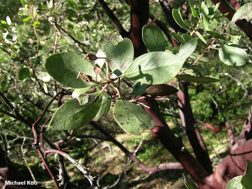 Cite this page as: Kuo, M. (2005, September). Manzanita (Arctostaphylos manzanita). Retrieved from the MushroomExpert.Com Web site: http://www.mushroomexpert.com/trees/arctostaphylos_manzanita.html |